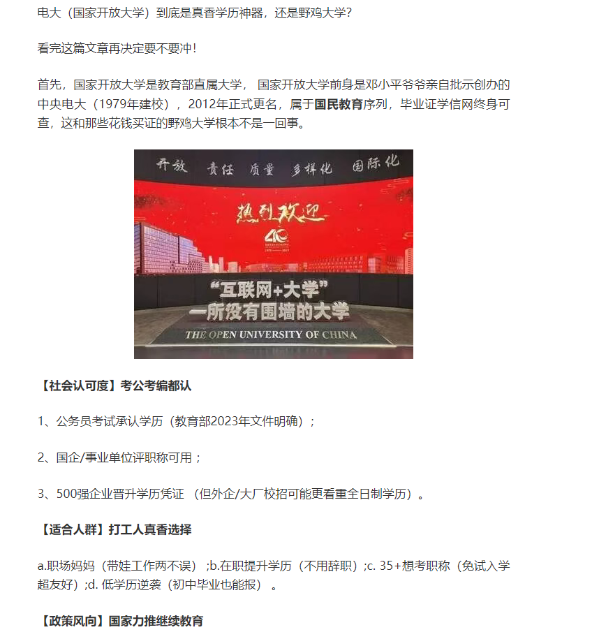花钱买证?国家开放大学是野鸡大学?